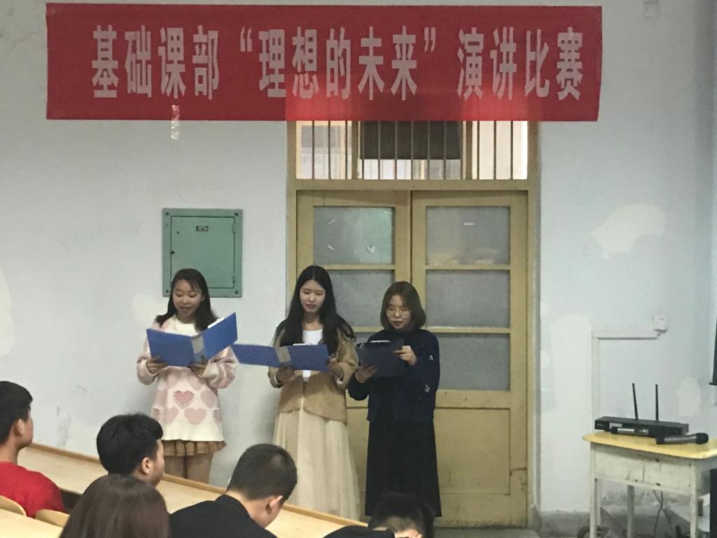 为了让同学们对“四有青年”有一个更深刻而准确的认识,也为了让更多的人体会到演讲的魅力从而丰富大学生的生活,同时为学生提供一个互相交流切磋演讲技术、展现演讲才能的平台,基础课部于2019年10月16日下午举办以“理想的未来”为主题的演讲比赛。