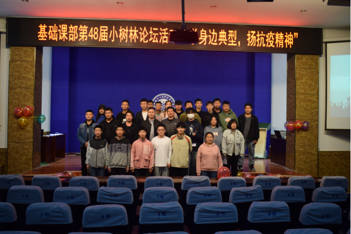 在这场突如其来的疫情防控的人民战争、总体战、阻击战中,全国人民严格遵循党中央部署,积极开展防控工作,动员各级党员干部和人民群众,凝成了万众一心、无坚不摧的坚固防线,无数平凡英雄临危不惧、敢于牺牲,保持了疫情防控的有力有序和社会大局的安全稳定,并取得了疫情防控的重大战略成果。榜样的力量是无穷的,伟大时代呼唤伟大精神,崇高的共产主义事业需要榜样引领,为了提高学生的综合素质,2020年10月29日晚在南校区报告厅,基础课部以“学身边典型,扬抗疫精神”为主题举办小树林论坛活动。