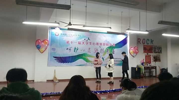 为了提高学生们的心理健康教育,增强心理免疫能力,2018年12月20日16:30由心理健康教育中心主办“呵护心里,激扬青春”心理话剧总决赛在大学生社团活动中心隆重举行,共有六个系进入本次活动的决赛,代表经济管理学院参赛的是物流3183班的学生。