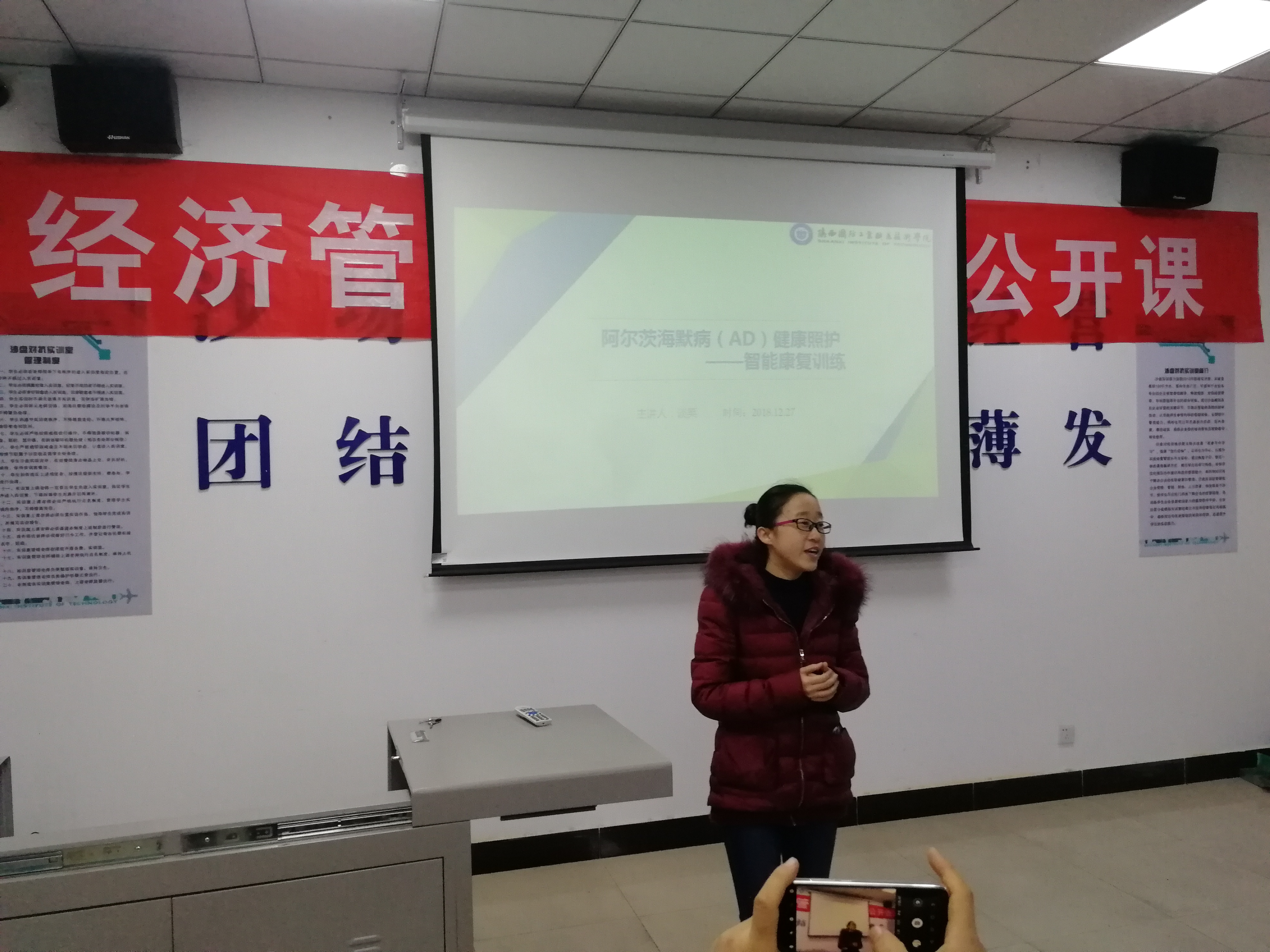 为深入学习贯彻习近平新时代中国特色社会主义思想和党的十九大精神,推进“两学一做”学习教育常态化、制度化,经济管理学院在北配楼5-604举办了一堂党员公开课教研活动,主讲教师是谈笑老师,内容为《阿尔茨海默病的健康照护》;开展了党员教师公开课观摩研讨活动,营造以党建工作促进学校教育教学工作的氛围,发挥党员教师的先锋模范作用。杨聪副院长出席会议,并对老师们提出了殷切的希望。