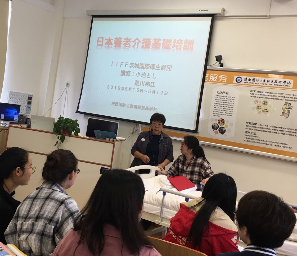 5月15日至17日,我校聘请的两位客座教授—社会福祉法人达生堂副理事荒川邦江女士和医疗法人达生堂城西病院顾问小池とし女士在我校老年服务与管理专业实训室对我校老年服务与管理专业师生及养老机构人员进行了关于“日本养老介护基础”的培训。本次培训得到了陕西汉唐兴业实业有限责任公司的大力支持和帮助。