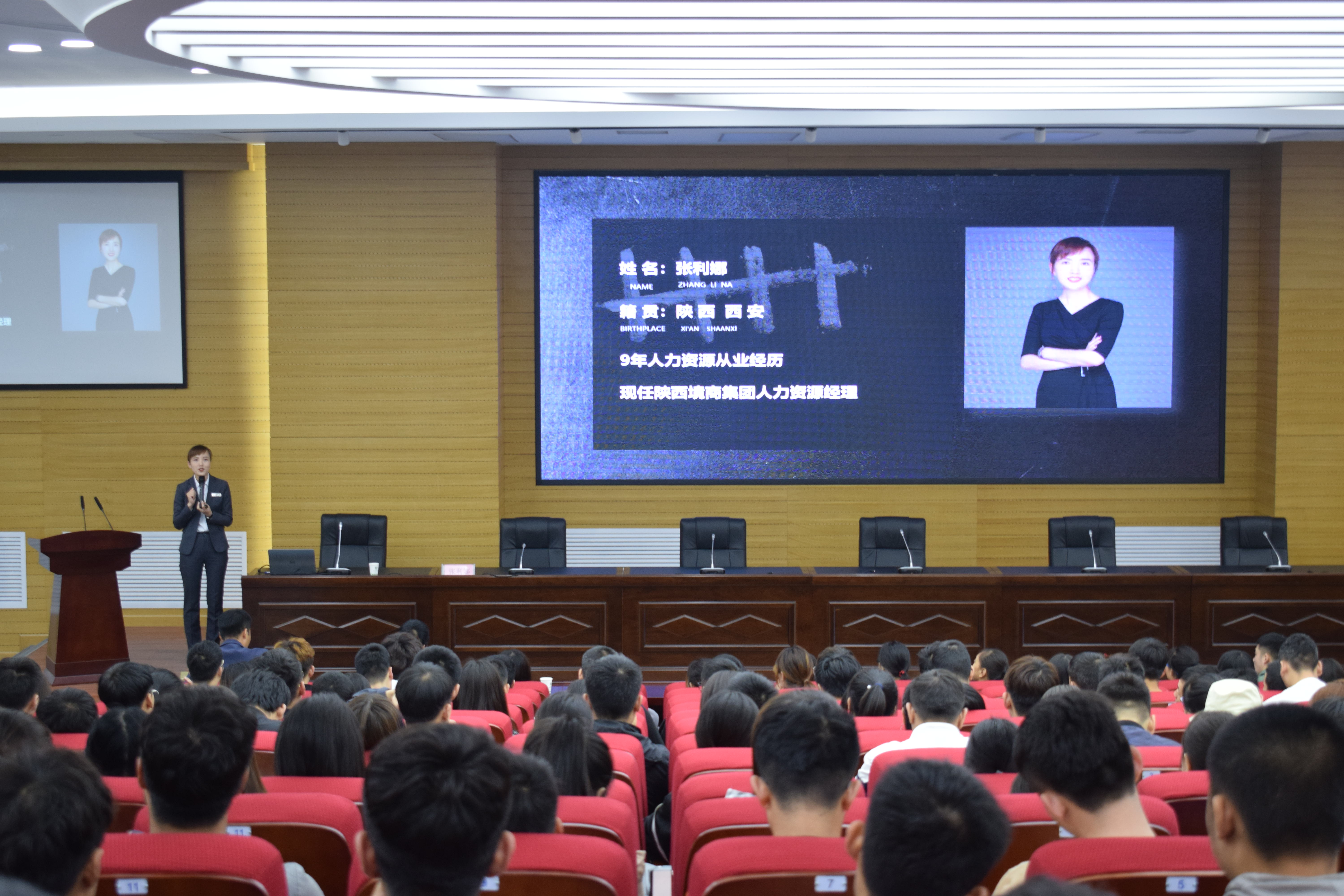 2019年5月28日下午4:30,经济管理学院邀请陕西境商集团人力资源部经理张利娜女士在教四报告厅举办以“知书达理,未来可期”为主题报告,经济管理学院王占祥书记、闫应召老师、刘杨老师、王潇老师以及面临求职的大二学生参加了本次报告会。