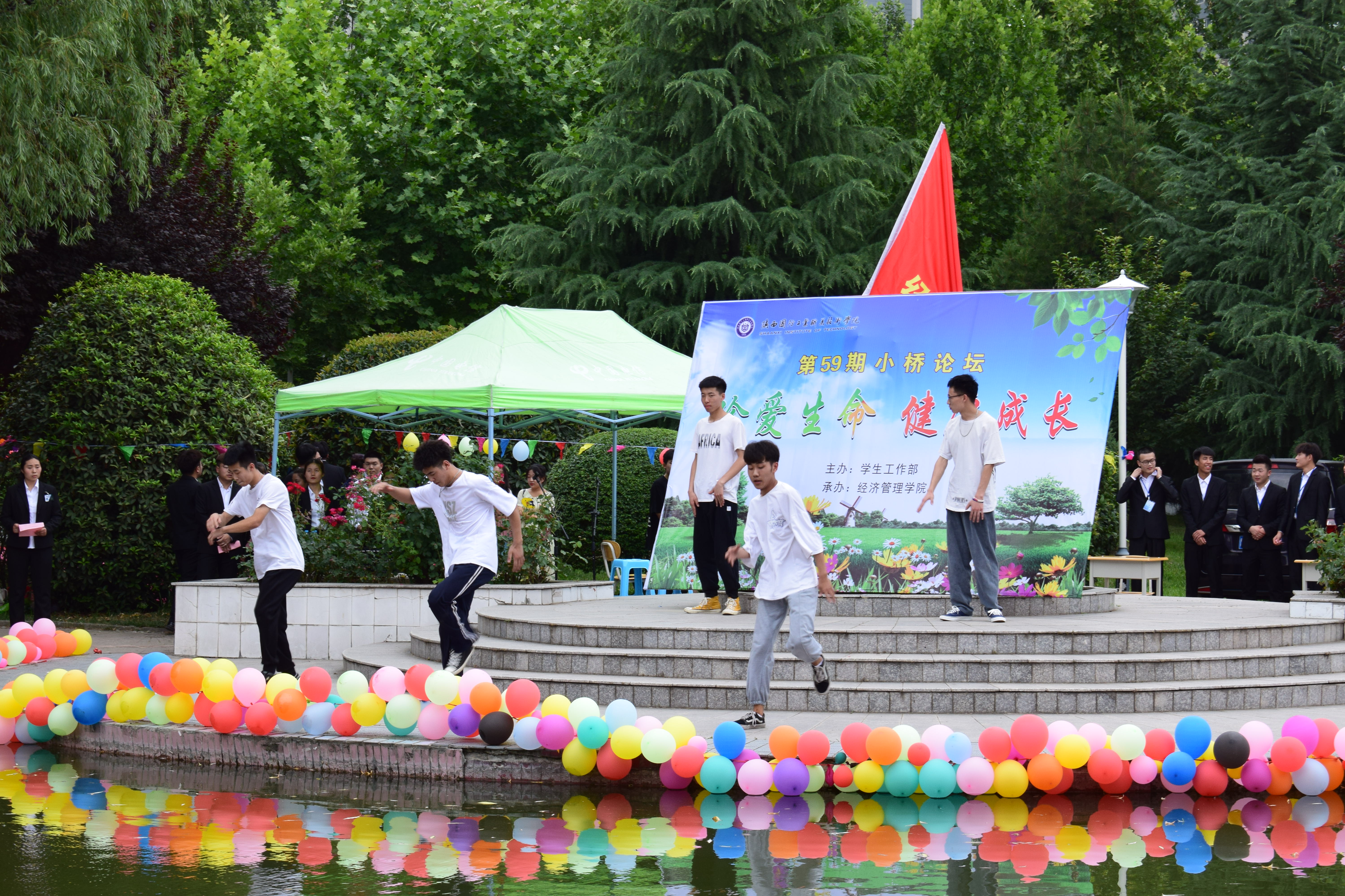 寒潮绕道去,热情洋溢来!经济管理学院于6月18日下午五点在犀月湖举行第59届“珍爱生命 健康成长”的小桥论坛活动。参加本次活动的老师有经济管理学院学生科科长强卫印老师,干事闫应召老师,团总支书记王烨老师以及院团委范老师等六位老师,学生主要包括经济管理学院大一同学以及化工等六个系的同学参加。