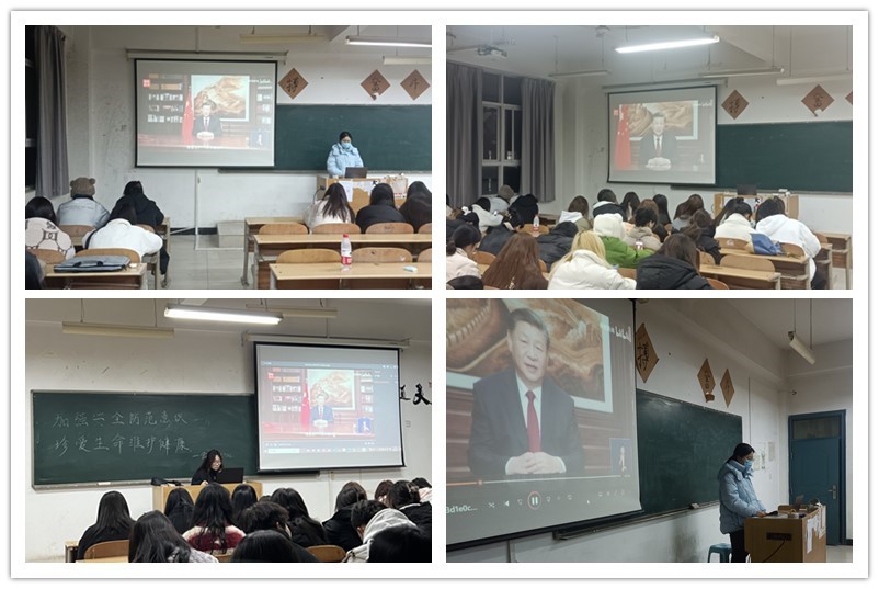 在这龙年翘首,喜迎元旦之计,我院为加强学生集体凝聚力与创新力,组织全体学生在2024年1月1日晚自习学习国家主席习近平发表的二〇二四年新年贺词。