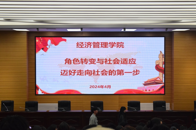 为全力促进毕业生高质量充分就业,抢抓春季促就业工作关键期,经济管理学院于2024年4月1日举办《角色转变与适应——迈好走向社会的第一步》就业专题讲座,激发毕业生就业热情,引导毕业生积极主动求职应聘。参加讲座的有经济管理学院党总支书记王文雅,2024、2025届毕业生和辅导员。会议由闫应召主持。