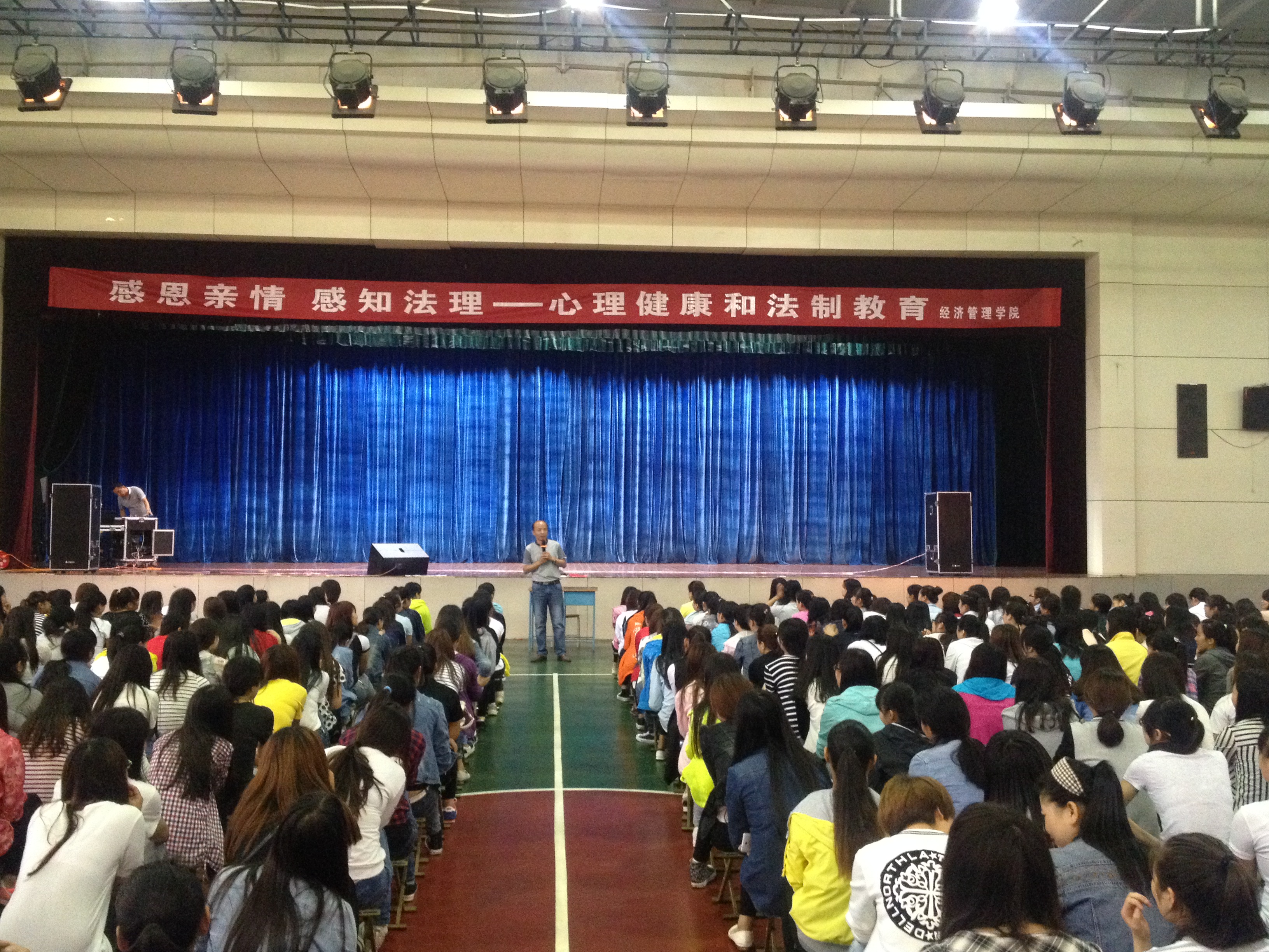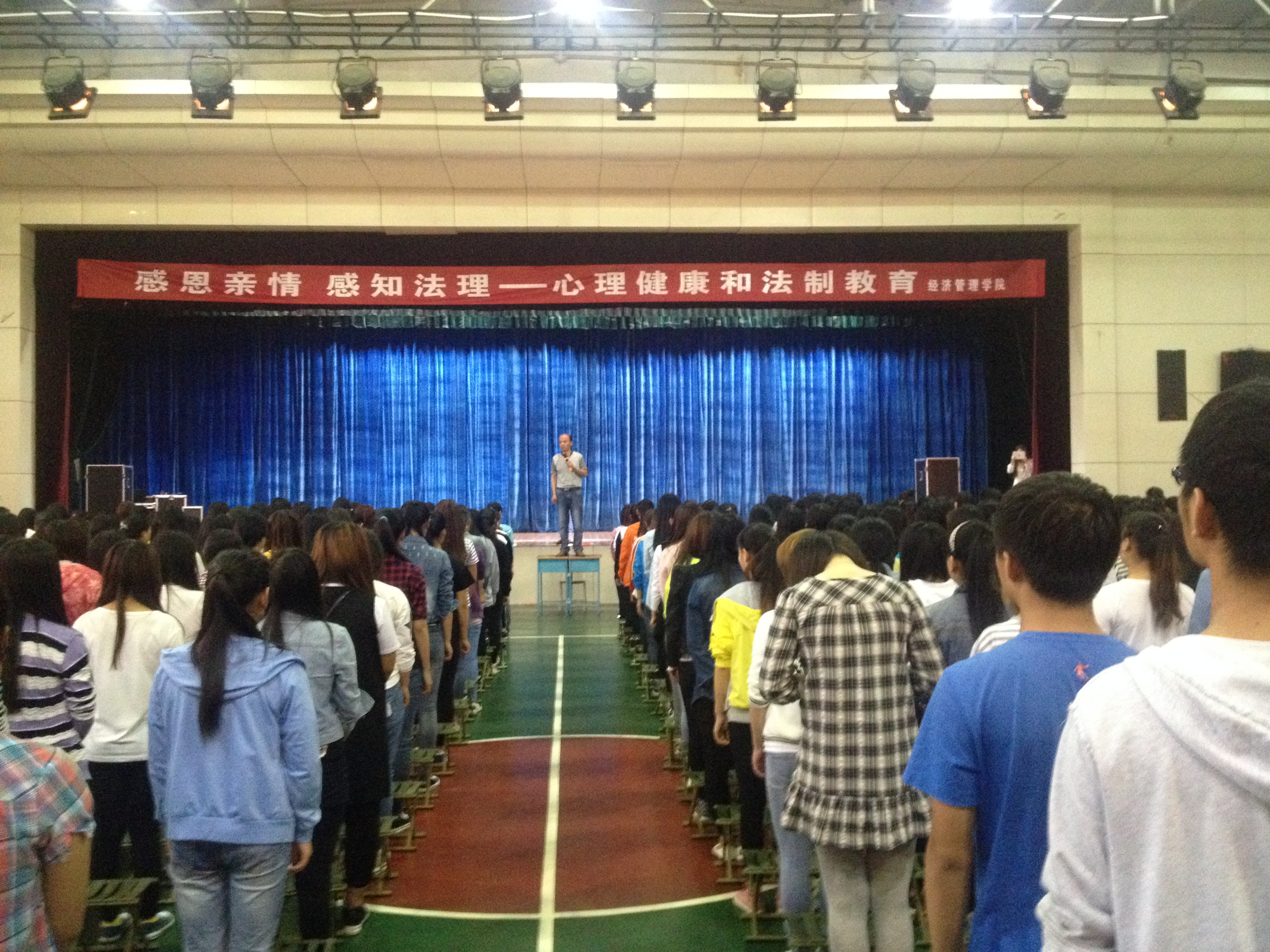 2015年 6 月 3 日下午经济管理学院以“感恩亲情、感知法理——心理健康和法制教育”为主题的心理指导讲座在我校大学生活动中心隆重举行;我分院特别组织了全分院的学生听取了讲座。 主讲人胡老师,著名的心理咨询师、 家庭医疗师、 催眠医疗师。 本次讲座精彩与生动,掌声不断。透过呼吸观想的练习、透过动态静心的练习,在安全而敞开的环境里唤醒身体的记忆,释放那些沉睡依旧的负性能量和负性情绪,让它们在行动中转化成正向能量再度流动,目的使同学们找到自由的喜悦和爱,在这个过程中体验到心灵和生命自由的整合重生。此次讲座,胡老师主要探讨的是人该怎样有一个正确的情感观和人生观。其丰富的心理学知识和对人心理的独到见解使同学们开拓了自己的知识面并从中受到很大 启发。 讲座过后,胡老师现场和同学们互动,并与同学们进行心理互动小游戏, 使同学们在娱乐中增加了对心理学知识的兴趣。