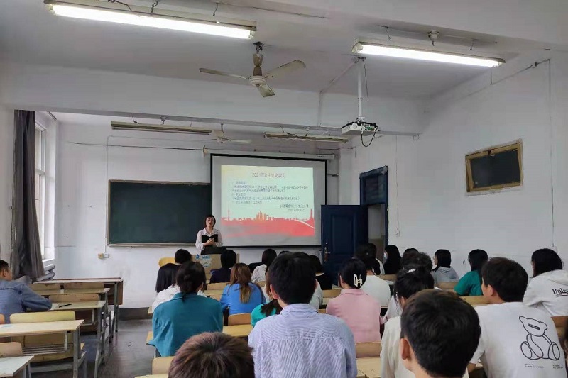 【学生党支部】三个学生党支部集中在南区1-208开展了党史学习教育,会议由第二学生党支部书记赵飞燕主持,全体师生党员参加。首先组织大家观看视频《习近平总书记在庆祝中国共产党成立一百周年大会上的重要讲话》,讲话引发热烈反响。从各个领域都能感受到中国共产党百年来的伟大征程,不断激励着广大党员努力奋斗。常丽丽老师带领全体师生党员学习了《中国共产党简史》(节选:伟大历史转折和中国特色社会主义的开创),号召大家在实事求是中敢想敢干。最后党总支书记王文雅老师从党史理论知识与现实实践方面对党员提出了要求,并结合自身经历畅谈了历时两个多月国防一千多名学子参加十四运开幕式训练的感受。号召党员同学们应当有充分的理论知识作基础,在实践中仅要具有坚韧不拔、吃苦耐劳、服务群众的品质,还要有不怕吃苦的行动,要将不畏惧艰难险阻的精神付诸到实践中去,把实现目标内化于实干之中。