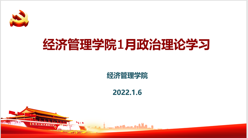 2022年1月6日下午,经济管理学院党总支通过腾讯会议线上开展1月教职工政治理论学习。全体教职工参加了本次学习,会议由党总支宣传委员王烨主持。