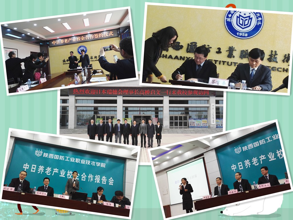 2016年3月20日日本瑞穗会理事长高桥启文一行五人应邀来我校参观访问,与我校进行了研讨并签署了老年产业校企合作协议,我校副院长刘敏涵、实践教学管理处长侯晓方、经济管理学院院长王占祥、书记严长远一行陪同。