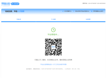 (三)用人单位提交完所有资料后,等待平台方审核,平台认证结果会在1~2个工作日内进行反馈,如有疑问请拨打平台客服电话:029-87569587、029-89556083,客服工作时间:工作日9:00 ~ 18:00。