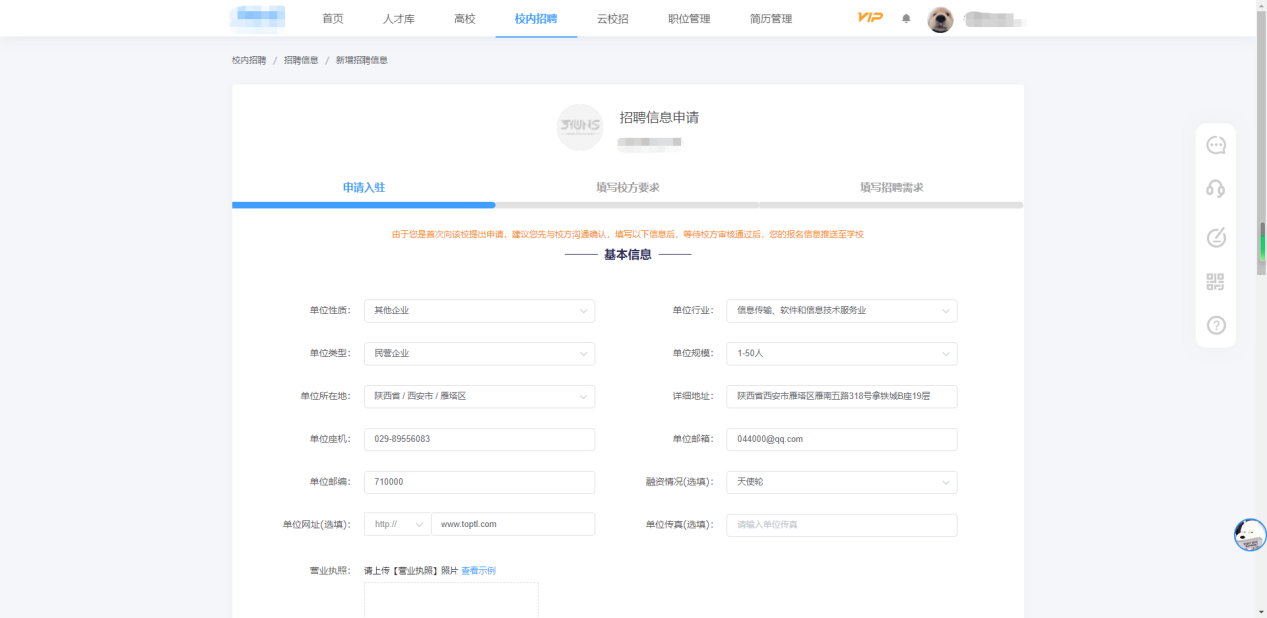 四、用人单位申请发布招聘信息