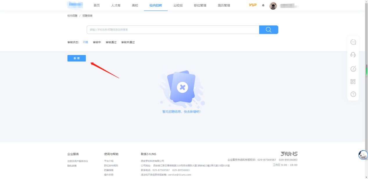 如您在使用校园招聘平台的过程中需要帮助,请致电平台客服电话:029-87569587、029-89556083,客服工作时间:工作日9:00 ~ 18:00。