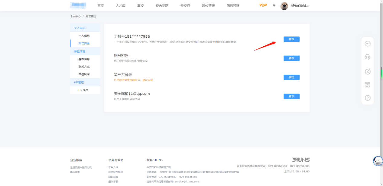 六、用人单位更换绑定手机号