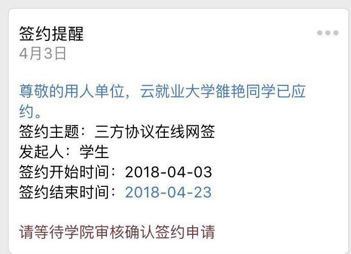 如当前签约已经被学院审核通过,则当前HR会收到签约申请审核通过的通知。