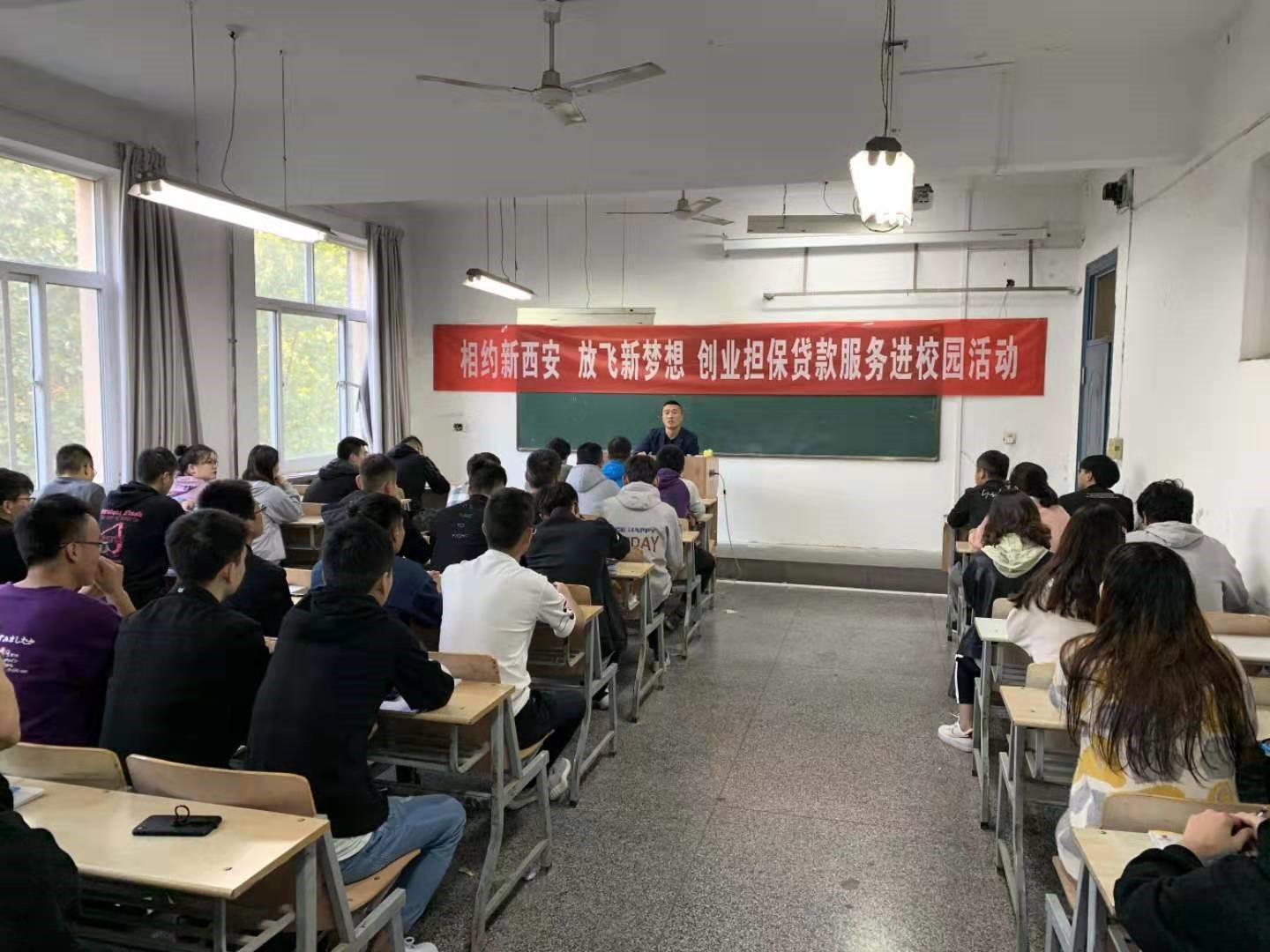 为进一步拓展大学生创业渠道,营造创新创业的良好氛围,10月17日下午,应我校思政部邀请,鄠邑区人社局创贷中心走进18新利苹果客户端,开展以“相约新西安,放飞新梦想”为主题的创业服务活动,学院思政部吴娟老师、SYB创业老师及有创业意向的100余名大学生参加了此次活动。