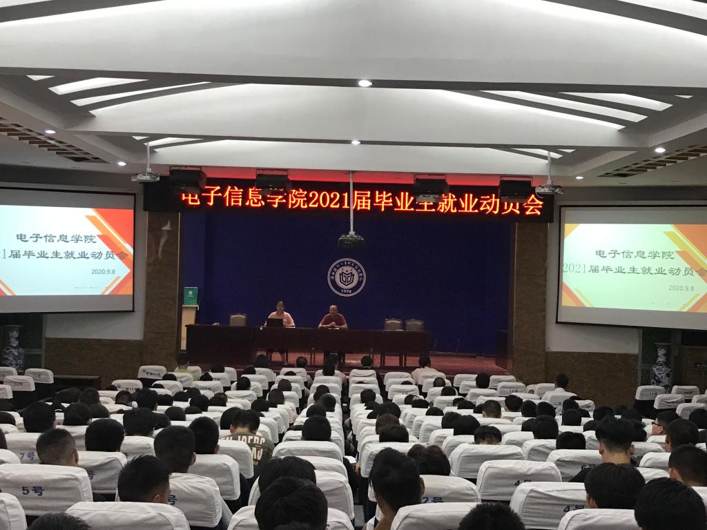 为进一步适应新冠肺炎疫情下的就业形势 ,引导2021届毕业生充分做好职前准备,帮助毕业生端正就业态度,电子信息学院9月9日下午4:30在南区报告厅举行了2021届毕业生就业动员会。电子信息学院党总支书记赵鹏、全体辅导员老师及318级毕业生参加本次会议。