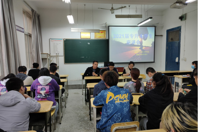 为全面了解专升本学生考试后学习生活情况,4月13日下午2:00,我院在南校区2-136召开2021届专升本学生座谈会。会议由王帅主持,分院党总支书记强卫印、郭瑞玲、李玲雀及专升本学生参加。