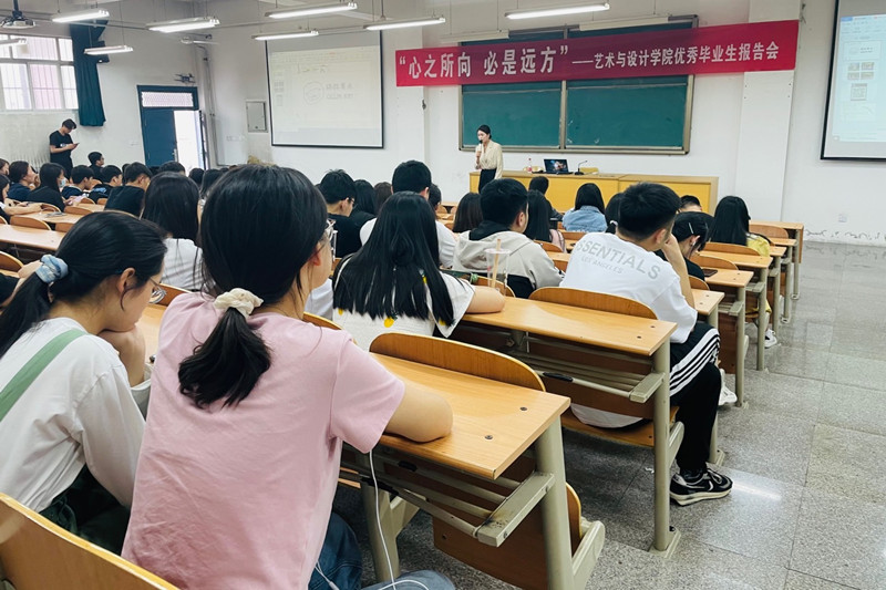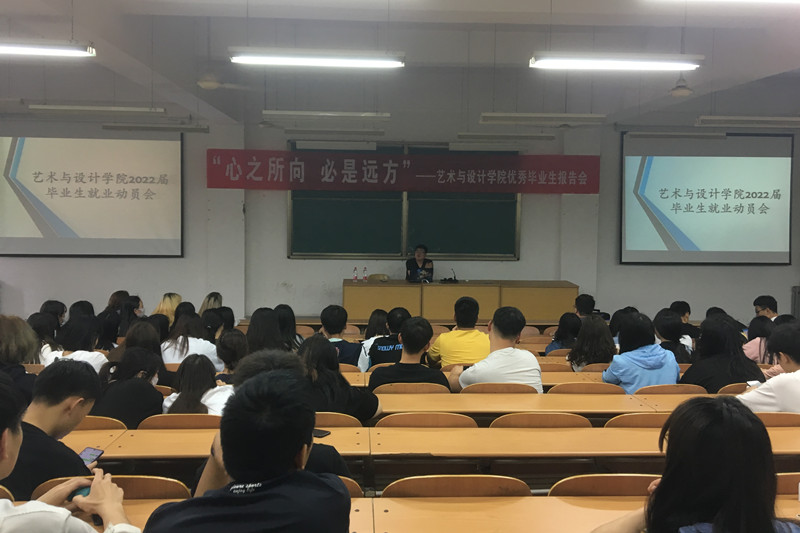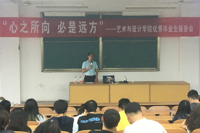 2021年5月26日下午,艺术与设计学院邀请优秀校友刘逍雪返校为艺术与设计学院全体2022届毕业生作了“心之所向 必是远方”主题报告会。艺术与设计学院党总支书记常继红和全体辅导员出席了报告会,报告会由学生科科长高翔主持。