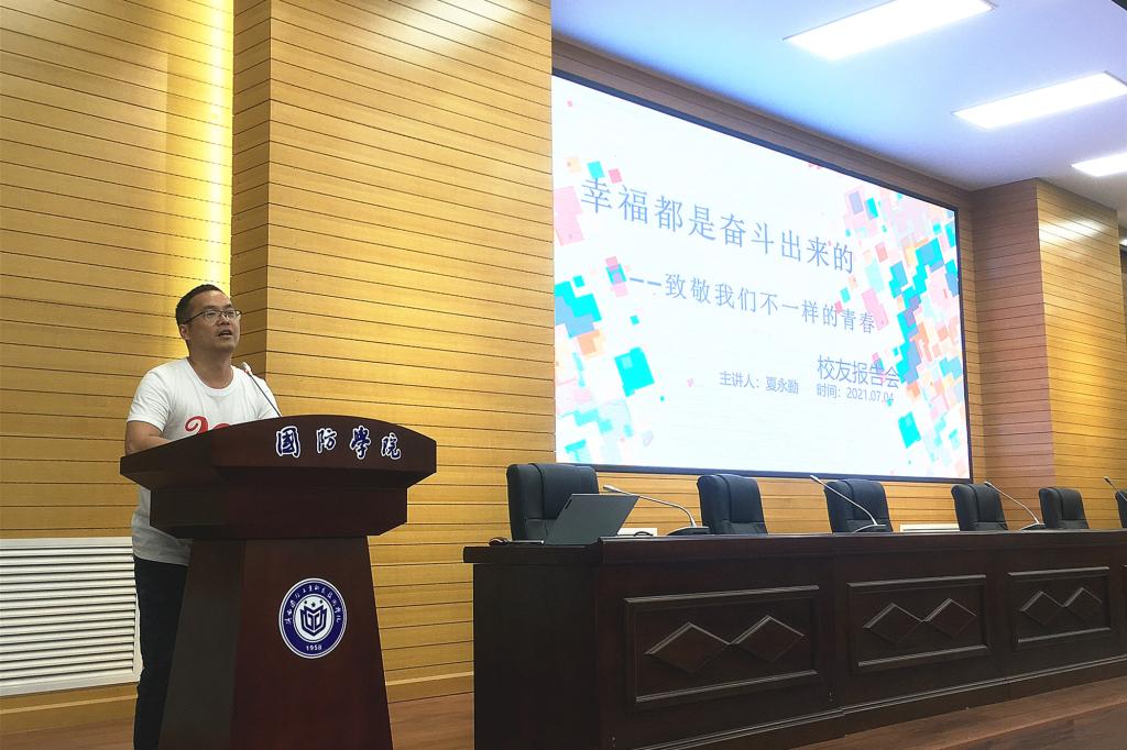 为进一步增强就业意识,充分发挥榜样的示范引领作用,帮助学生树立正确的就业观、择业观,7月4日晚,机械工程学院邀请校友夏永勤为分院全体319级学生作题为《幸福都是奋斗出来的-致我们不一样的青春》的主题报告会。