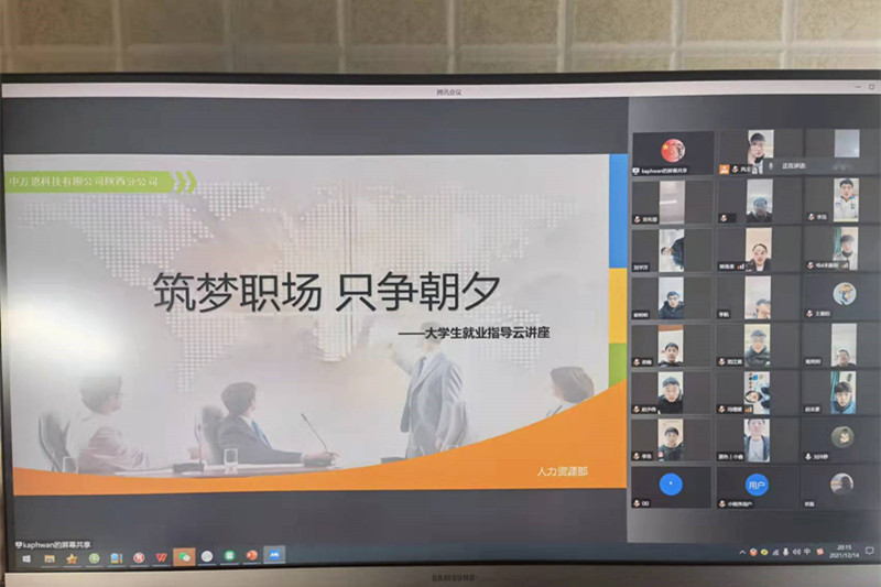 为进一步推进疫情期间2022届毕业生的就业指导工作,2021年10月14月下午16时30分,人工智能学院成功邀请中万恩科技有限公司西安分公司人力资源部总监张志平就求职经验以及面试技巧等相关内容在腾讯会议平台成功举办“逐梦职场,只争朝夕——人工智能学院2022届毕业生就业“云”指导专题讲座”。我院全体2022届毕业生参加讲座。