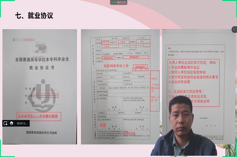 根据我校就业中心关于2023届毕业生就业工作的相关安排并结合我部实际,为更高效服务毕业生,确保毕业生就业工作顺利开展,基础课部于2022年4月21日晚开展2023届毕业生就业动员,基础课党总支书记、全体辅导员、518级全体学生参加就业动员会。动员会以线上动员的方式开展,校内学生在本班级教室内参加,校外学生通过网络线上观看,本次动员会由基础课部学生科长余腾飞老师主讲。