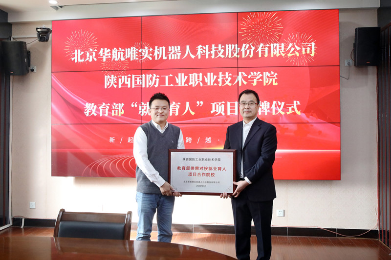 随后,张永军代表学校接收了北京华航唯实机器人科技股份有限公司授予的“教育部供需对接就业育人项目合作院校”牌匾。