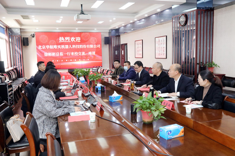 2023年3月1日,北京华航唯实机器人科技股份有限公司总经理助理徐彬彬一行来我校洽谈校企合作,并举行教育部供需对接就业育人项目的授牌仪式。学校副校长张永军,招生就业处和智能制造学院相关负责人参加会议。会议在我校北校区第一会议室举行,会议由智能制造学院党总支副书记兼副院长沈博主持。
