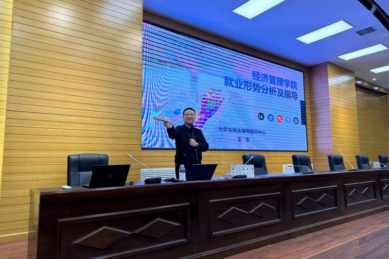 大会第一项,由王东老师做《经济管理学院就业形势分析及指导》报告。王东老师从当前全国大学生面临的就业形势、就业的影响因素、就业难的原因等方面进行了详细分析与解读,使学生更加清晰的认识到当前大学生就业形势的严峻性。然后王东老师通过经济管理学院历届毕业生就业的行业、区域、薪资、专升本升学等数据,分析了经济管理学院毕业生的就业意向和偏好,帮助经济管理学院学生找准自己的就业定位。
