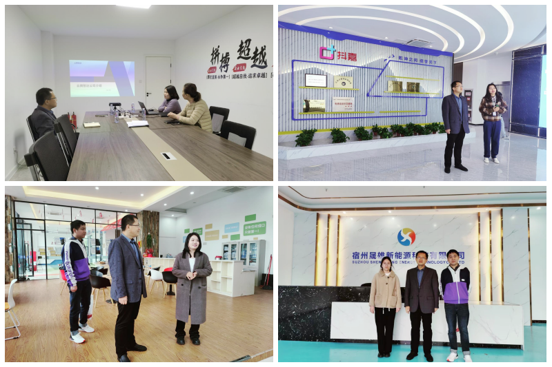 王勃一行先后走访了云腾智达(宿州)信息技术有限公司、抖嘉网络科技公司、和君纵达数据科技有限公司、宿州晟雄新能源科技有限公司,并与相关负责人就就业招聘、学生发展、人才培养等情况进行了座谈交流。单位负责人分别介绍了企业近年来的发展状况、业务开发及人才需求等方面内容,并表示希望同学院进一步加强交流,增进了解,在各方面开展广泛合作。