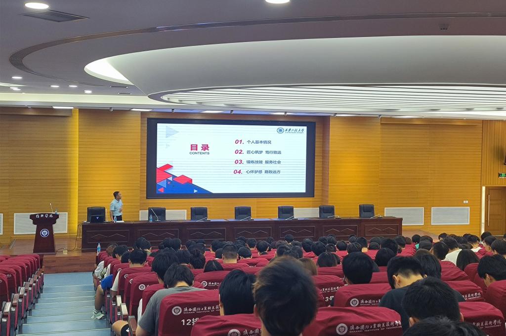 为帮助学生明确就业目标,坚定职业方向,5月21日下午,机械工程学院在教四报告厅开展“匠心筑梦,技能强国”优秀校友报告会,模具设计与制造专业2005届毕业生魏同学应邀做报告。报告会由机械工程学院学生科杨景主持,机械工程学院党总支书记刘绪民、部分教师代表及全体2025届毕业生参加。
