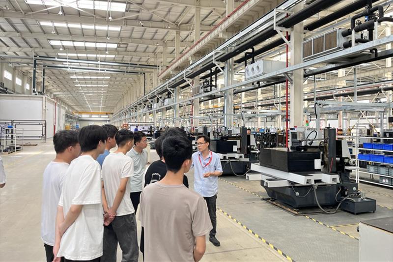 2024年5月31日在西安集贤比亚迪三期活动室,为促进部门与合作院校中即将进入大三校外实训学子的交流,西安制造部为欢迎对学生的到来,促进学子对公司企业的认同,构建有效沟通渠道、增强交流,特组织举办企院莘融,遇见夏蕴情西安制造部与陕西国防职业技术学院学子的交流会。制造部门相关领导、同事10余人,陕国防师生48人,参加了此次活动,交流会上企校双方一起观看了企业宣传片,并参观了企业车间和宿舍。对企业的各个方面学生和企业人员进行了深入的交流。
