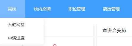 四、“高校”里面有两个选项,一个是入驻网签,用人单位可以选择意向高校进行入驻,高校入驻审核通过后,就可以在这所学校开展招聘活动;一个是申请进度,可以查询入驻申请的进度情况。