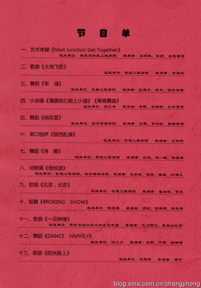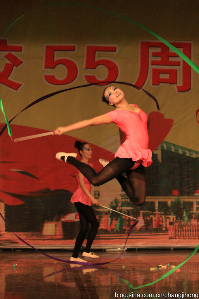 一段充满活力、动感十足的艺术体操表演《Next junction get together》拉开了校庆晚会的序幕。虽然入秋的夜晚天气微凉,但现场的热情却是一浪高过一浪。 歌曲《大地飞歌》激情高亢,喜庆的气氛充满了现场的每一个角落。教职工合唱队深情而热烈的歌声在大学生活动中心回荡,让在场师生久久沉浸其中。单口相声《陕西乱弹》充分展现了八百里秦川之上的秦腔文化,全场一片欢笑声。舞蹈《鸿雁》为在场观众带来了美轮美奂的视听享受,一群鸿雁向着我们的国防梦、中国梦展翅翱翔,将晚会推向了高潮。诗朗诵《母校颂》则激起了在场所有国防人对母校的热爱之情。西安石油大学大学生艺术团带来的吉他弹唱组合,为我们呈现了新疆异域风格的表演,赢得了全场热烈的掌声,把现场气氛再一次推向了高潮。最后,一曲《阳光路上》气势磅礴,全场沸腾,台上台下汇成欢乐的海洋,祝福学院在阳光路上旗帜飞扬,再创新的辉煌!