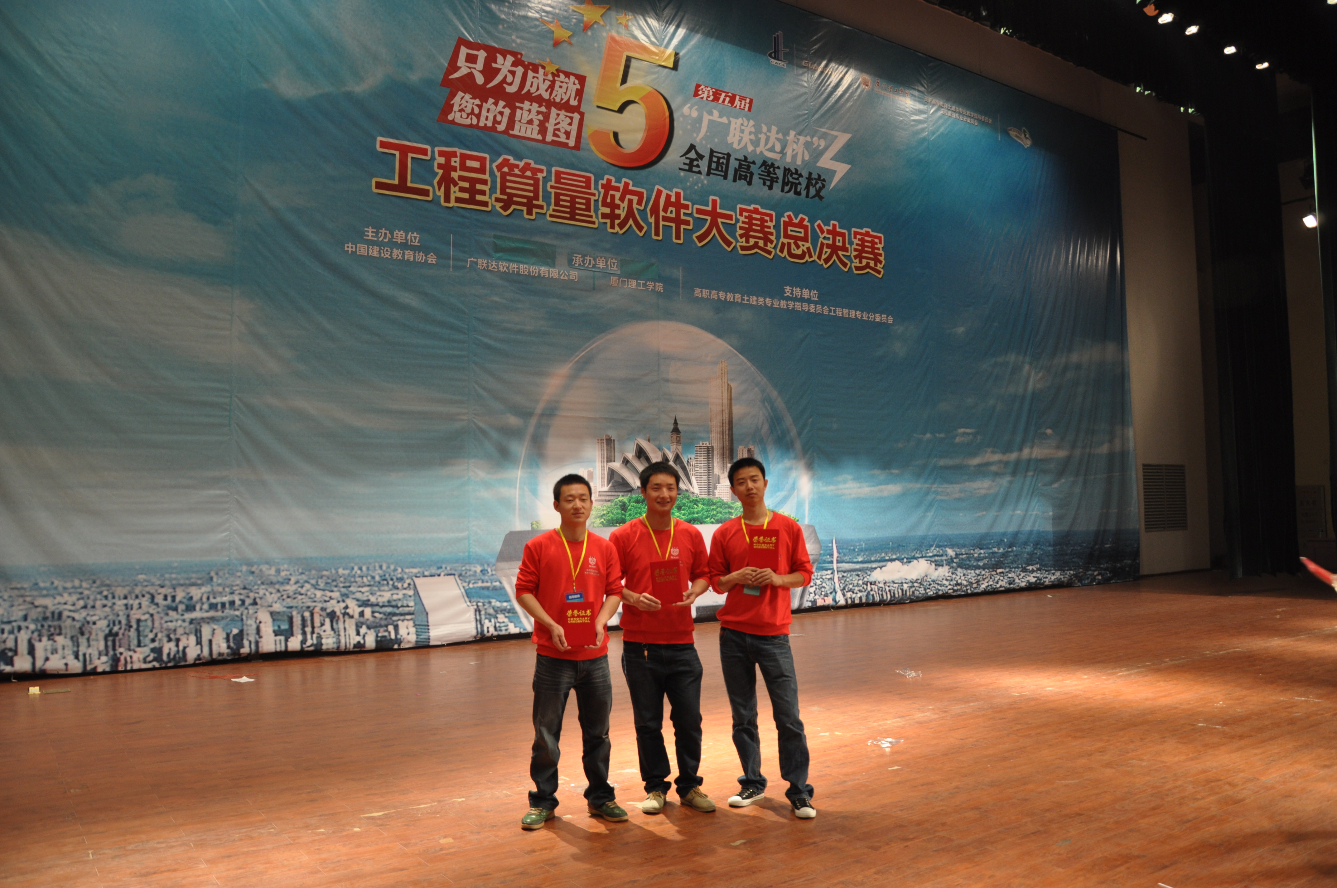 11月17日,由中国建设教育协会主办,广联达股份有限公司承办的“只为成就您的蓝图”——第五届“广联达杯”全国高等院校工程算量大赛总决赛在厦门理工学院隆重举行。本次总决赛规模大,吸引了207所学校参赛,包括台湾两所高职高专院校。代表我院参赛的建筑与热能工程学院焦迎举、邵鹏、张亚刚荣获团体三等奖,刘占宏、陈蓉两位教师荣获全国“优秀指导教师”称号。