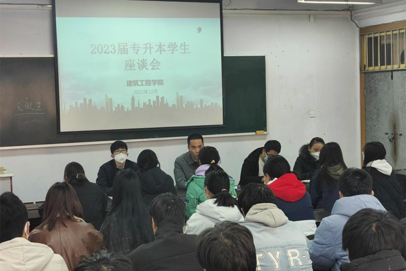 为了解在校专升本学生的生活和学习情况,建筑工程学院2022年12月2日下午在南校区召开专升本座谈会,分院党总支书记强卫印、毕业班辅导员、在校专升本学生。