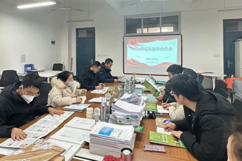 为贯彻落实教育部和中央军委国防动员部关于高校大学生征兵工作的要求部署,积极鼓励和引导大学生应征入伍,根据省教育厅、省征兵办公室、学校保卫处关于进一步做好大学生征兵工作的通知规定和相关计划,2023年12月29号,建筑工程学院在4-240召开2024年春季征兵宣传工作动员会,参会人员有建筑工程学院党总支书记强卫印、建筑工程学院院长张向阳,以及全体专兼职辅导员。