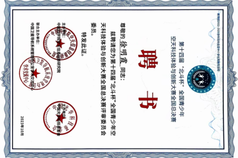 第十四届“北斗杯”全国青少年空天科技体验与创新大赛全国总决赛于2023年10月27至29日在郑州举行,来自全国24个省级赛区的2000余名优秀选手展开了激烈比拼,我校教师徐明霞受邀担任此次大赛全国评审委员会评审专家。