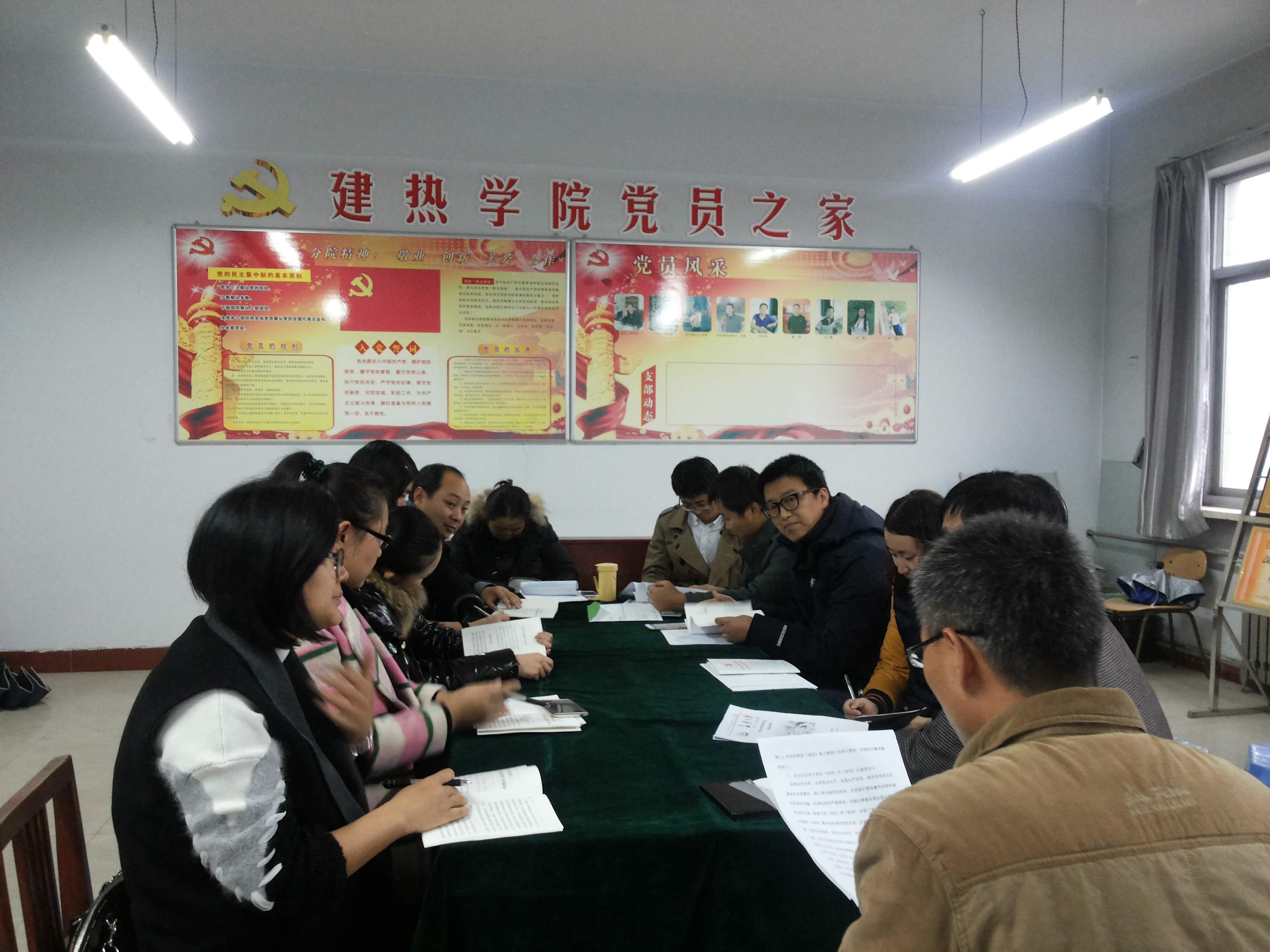 2015年11月17日下午4:30,建热党支部书记张向阳、院长郭户林及分院全体党员在信息楼308党员之家学习《中国共产党廉洁自律准则中国共产党纪律处分条例》。