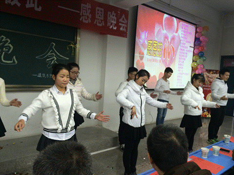 “你们知道自己父母的生日吗?”主持人有力的呐喊声促使着同样们纷纷举手发表自己对父母的爱,诉说着对父母的心声。张宏伟老师的一首饱含深情的“窗外”,再一次将晚会现场气氛推向高潮,晚会在学生会成员的手语表演“感恩的心”中落下了帷幕。活动最后,张向阳老师表示,本次活动对于同学们了解感恩节、懂得感恩非常有意义,也希望同学们在日常生活中学会乐于付出,学会用自己的行动去感恩他人,尤其是要感恩父母感恩老师。