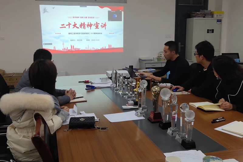 为深入学习贯彻党的二十大精神,建筑工程学院党总支于2022年12月8日下午在教4-240召开“二十大精神宣讲会”,会议由党总支书记强卫印主持,全体党员通过线上和线下相结合的方式参加会议。