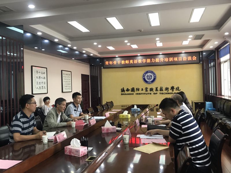 7月9日,我校在北校区第一会议室举行骨干教师英语教学能力提升培训项目洽谈会,教师发展中心主任、国际交流处处长李周平、教师发展中心陈刚、周高鹏,参培教师代表及西安外国语大学教育部出国留学人员培训部主任赵堪培,教师发展中心刘涛,项目主管肖立志,教学管理李娜及授课教师代表参加此次洽谈会。