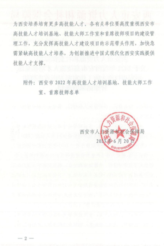 近日,西安市人力资源和社会保障局印发了《西安市人力资源和社会保障局关于2022年度西安市高技能人才培训基地 西安市技能大师工作室 西安市首席技师评审结果的通知》(市人社函〔2023〕234号),我校教师冯琨荣获“西安市首席技师”荣誉称号。