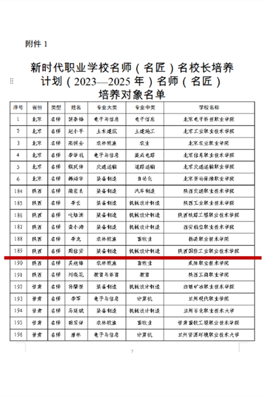 近日,教育部公布了《关于公布新时代职业学校名师(名匠)名校长培养计划(2023-2025年)培养对象和培养基地名单的通知》(教师厅函〔2023〕23号)。我校智能制造学院教师周信安成功入选名师培养对象。