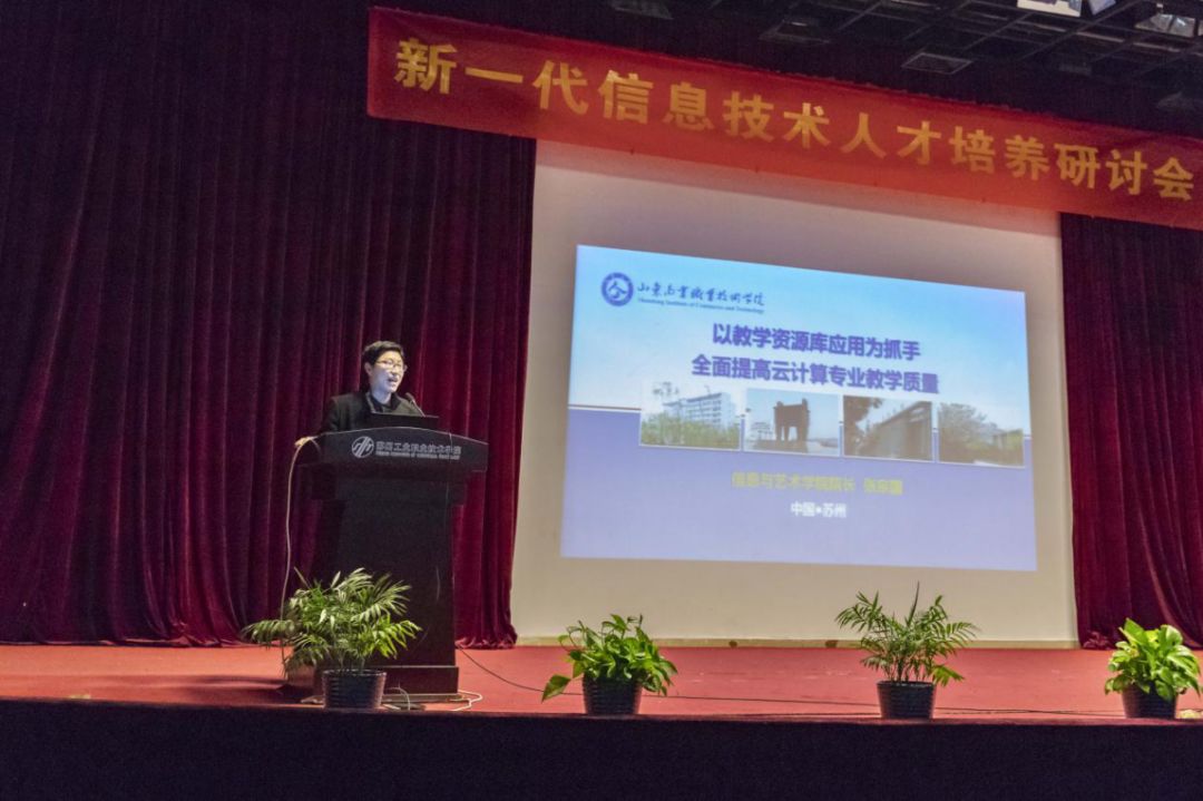 苏州工业职业技术学院副院长苏霄飞做了题为《深化产教融合 建设信息技术专业发展新生态》的报告,指出苏州工业职业技术学院将通过新一代信息技术支撑相关专业发展,主攻智能制造和工业互联网专业群建设,打造产教融合校企合作人才培养高地,建成与苏州经济发展水平相匹配的高职院校。