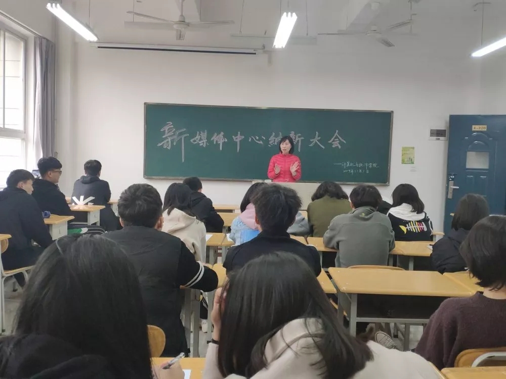 本次活动由段聪影主持,段老师阐明了学院新媒体中心创立的初衷,将以习近平新时代中国特色社会主义思想为指导,坚持正确的舆论导向,紧密围绕学院工作大局,依托学院官网和微信公众号,微博、贴吧等平台,进一步推动学院发展。