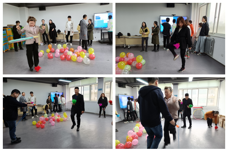 本次活动内容丰富多彩,有踢毽子、摇转呼啦圈、踩气球、跳绳等多个项目。活动开始后,老师们积极地参与到各个项目中来,大家全力以赴,现场气氛非常活跃,各个汗流浃背仍乐此不疲,在活动中不仅仅放松了身体,缓解了一天的疲劳,更拉近了教职工之间的距离,增进了大家的友谊,充分展示了计算机与软件学院全体教职工阳光、乐观、奋进的精神面貌。