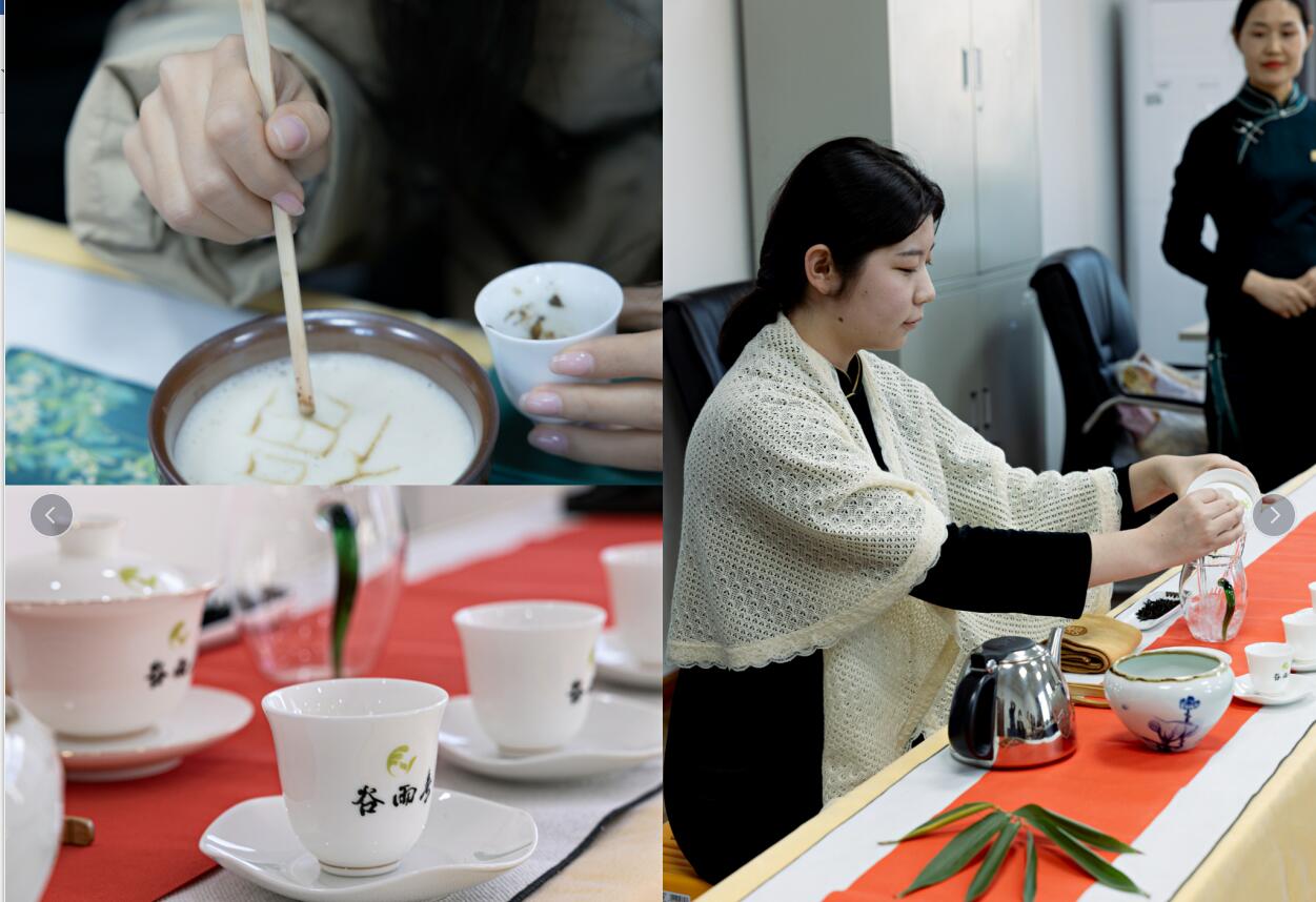 本次活动邀请到鄠邑区谷雨春茶社茶艺师带领大家了解茶的起源、发展史、茶的分类、宋代点茶法等方面的知识。伴随着舒缓的音乐,茶艺师用轻巧柔美的动作向大家展示烫杯、赏茶、投茶、冲水、闷茶、敬茶、闻香、品茶、回味、谢茶十道程序。茶艺师淡定从容,整体动作一气呵成,一举一动透出熟练和优雅,使大家近距离地感受中国茶文化的魅力。茶道不只是简单地冲泡一杯茶,更是一种注重细节、尊重自然、追求和谐的生活方式。在茶道中,每一个环节都有严格的规范和礼仪,每个步骤都体现了对茶的敬畏和对生活的态度。