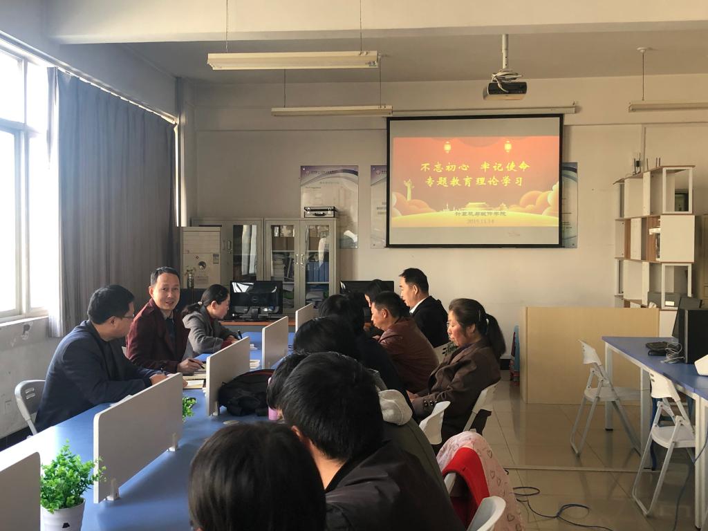 2019年11月14日下午4:10,计算机与软件学院教师党员在8-503开展“不忘初心、牢记使命”主题教育第二期读书会。计算机与软件学院党总支书记潘冬,副院长王勃等党员同志参加了此次活动。