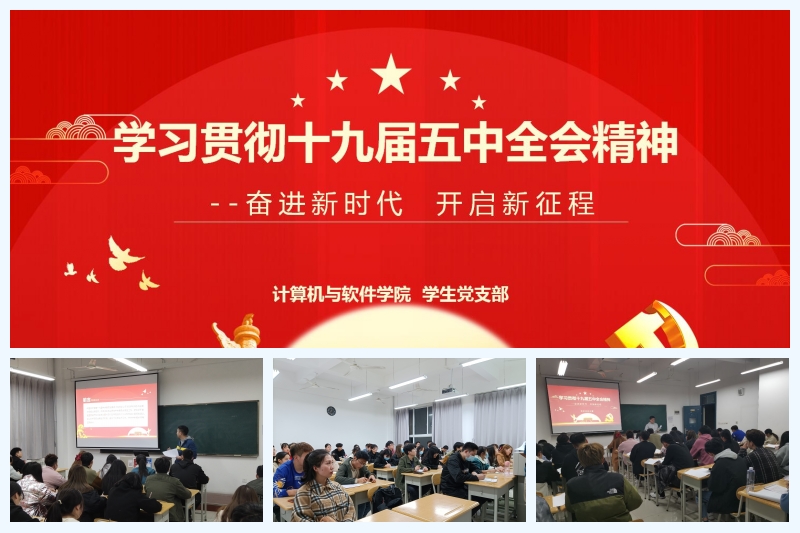 11月18日晚,计算机与软件学院学生党支部在4-313教室召开党的十九届五中全会精神专题学习会,第二党支部书记向仲攀、第三党支部书记段聪影以及全体发展对象参加,会议由第一党支部书记周睿主持。