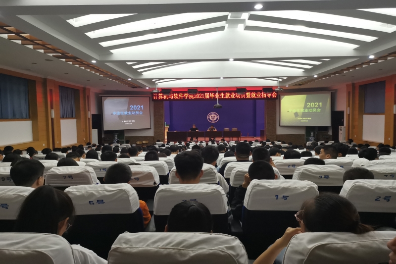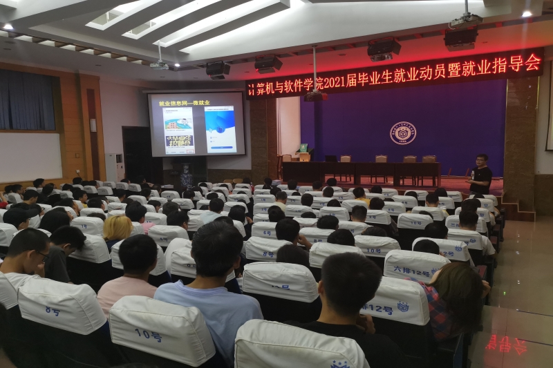 9月17日晚,计算机与软件学院在南区信息楼报告厅成功召开2021届毕业生就业动员与就业指导会,计算机与软件学院党总支书记王勃、学生科科长周睿、毕业班辅导员及2021届全体毕业生参加了此次大会。